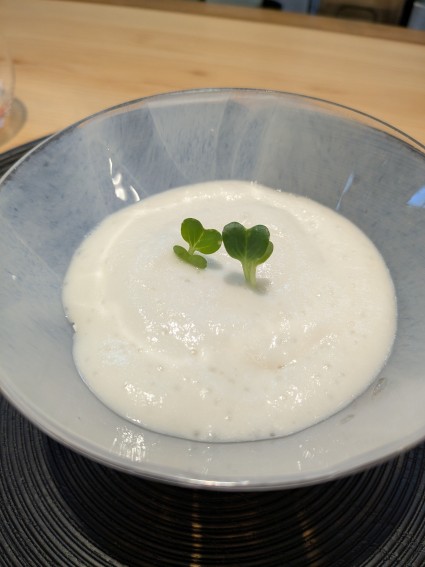 新玉ねぎ、汲み上げ湯葉、コンソメにパルミジャーノ