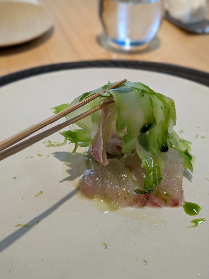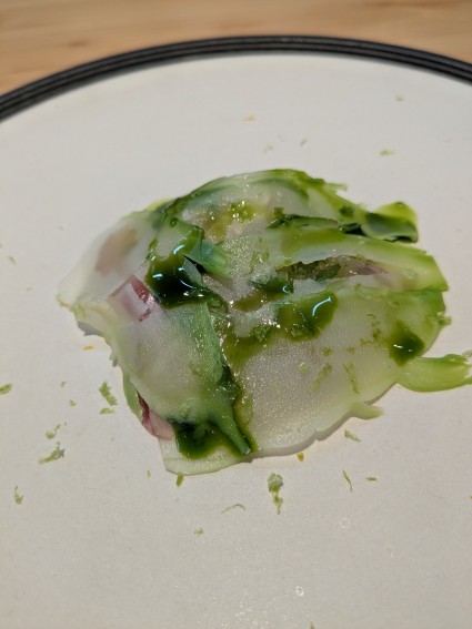 もう一つの前菜は赤水と蕾菜、木の芽とライムを使ったもの