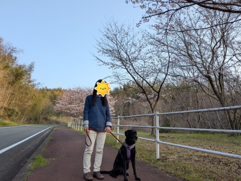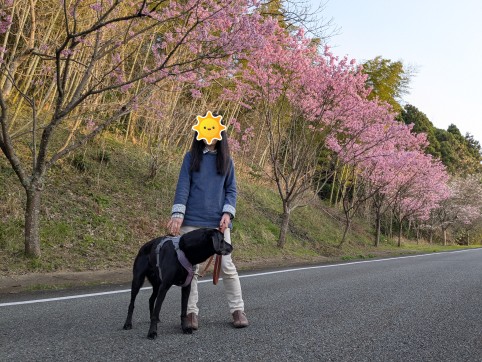 道路を挟んで右側にはソメイヨシノが、左には八重の桜が咲く。