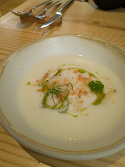 前菜の1品は新玉ねぎ、白海老のポタージュ