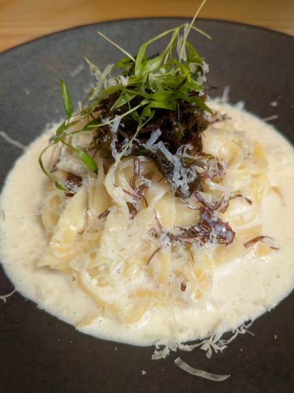 そして浜田港の生のりと白みそのクリームソースパスタ