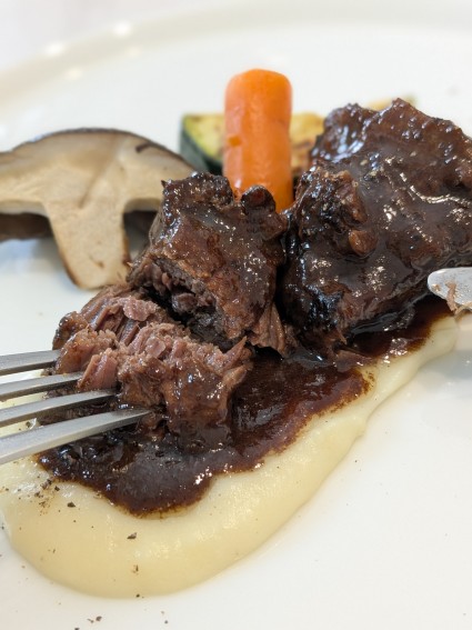 赤ワインで煮込まれたお肉は旨味をしっかりとまとって柔らかくなり