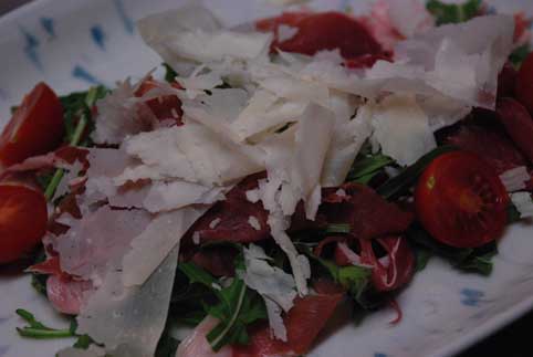 このお店で生ハムとデデ ロディジャーノチーズを買って、野生のルッコラとあわせてみた。