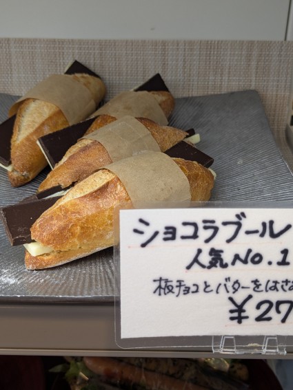 バゲットの香ばしさに板チョコが1枚まるごと挟んであって