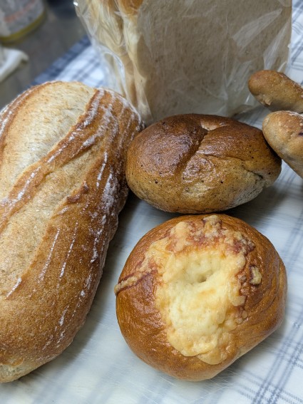 食パンにカンパーニュ チーズや抹茶のベーグルも買った。
