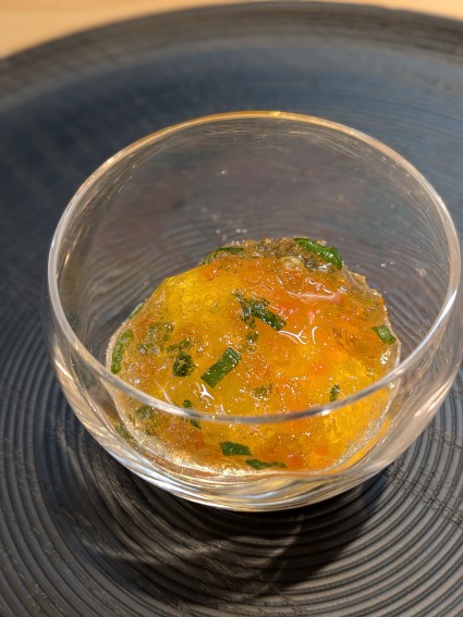 人参と新いくら、コンソメジュレのひと皿