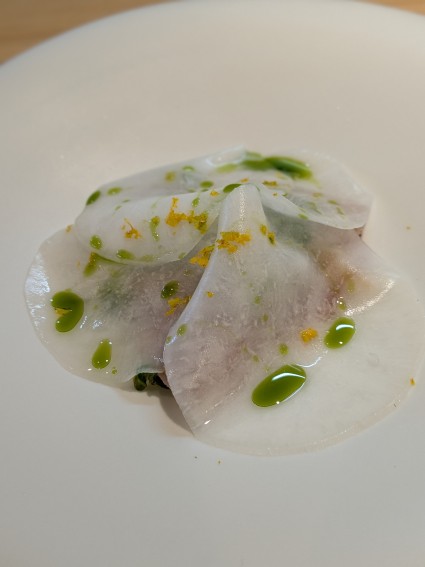 寒鰤と蕪、からすみに柚子を散らしたひと皿