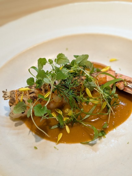 浜田産天然足赤海老とカリフラワーのムース みかんのビネグレッド