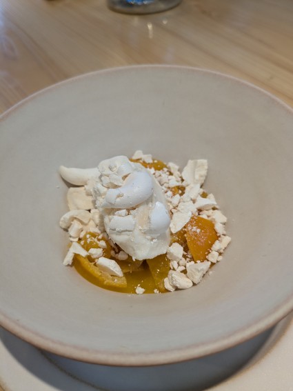 自家製からすみと富有柿、セロリ、マスカルポーネ