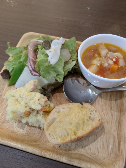 最初に出てきたのはサラダやパン、スープまでついているワンプレート