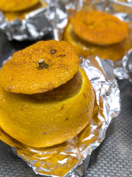 柚子の器にそれを詰めてオーブントースターで焼く。